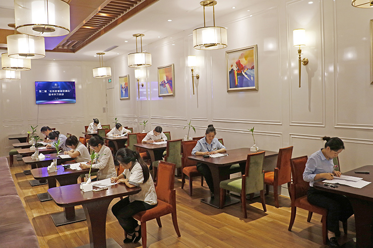 此届读书学习活动按照“统一笔试+分期口试”的考核机制,分为开卷填写的笔试、阅读回答的口试两种方式,允许参考人员在考核现场通过纸质材料或手机查阅《员工应知应会知识集锦》。2025年9月25日14时,欧堡利亚酒店集团旗下12家酒店的各级管理人员、具有高中及以上文化程度且50周岁以下的普通员工参加了所属酒店自行组织的统一笔试,既考验大家对应知应会知识的熟悉程度而能否快速找到对应知识点,也引导大家在查阅过程中深化理解,避免“死记硬背、学用脱节”;2025年9月26日-9月29日,欧堡利亚酒店集团旗下12家酒店不符合笔试条件的其余员工参加了所属酒店自行组织的分期口试,灵活适配员工的学习特点,既降低考核门槛、检验学习成果,也对员工给予充分鼓励、增强学习信心。